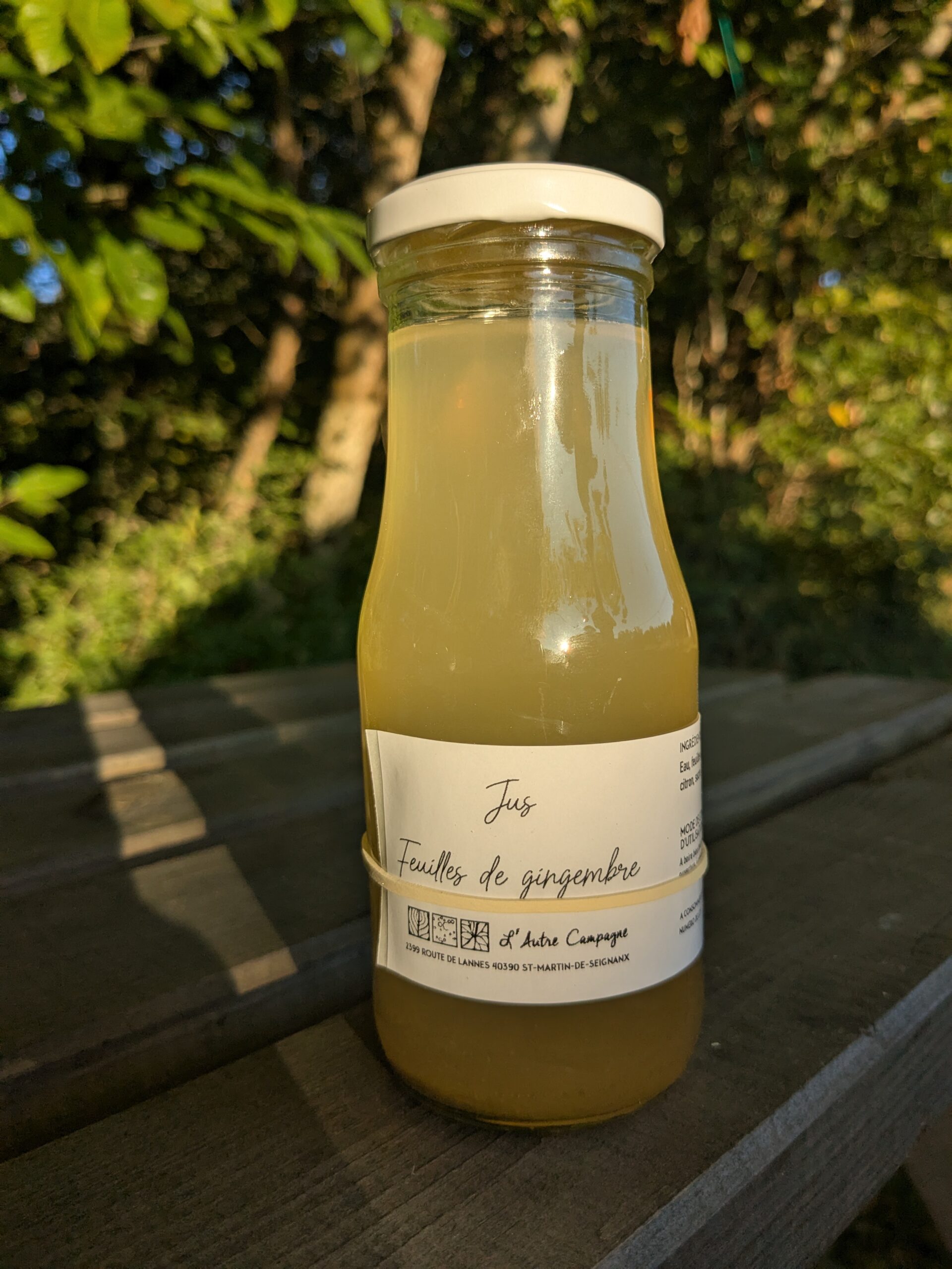 Eau, feuilles de gingembre (12%), jus de citron, sucre.